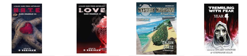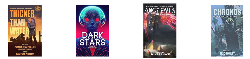 My short fiction can be found in various magazines and anthologies (see Publications). Some of the anthology covers are below — aren’t they pretty? You can find them all through my Amazon author page.